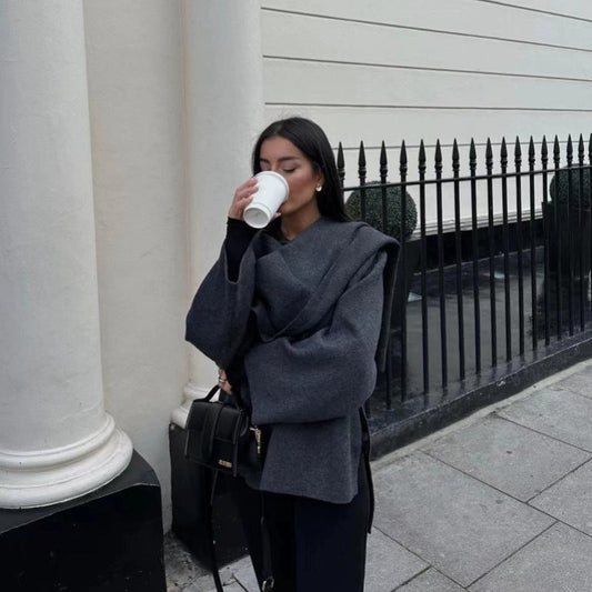 🔥🖤Black Friday Sale:50% OFF🔥Asymmetrical Short Women's Jacket with Scarf